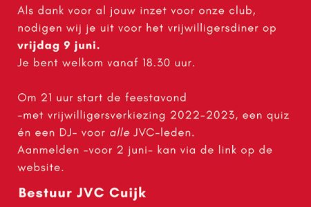 Op 9 juni wordt er een vrijwilligersdiner met aansluitend een feestavond georganiseerd.