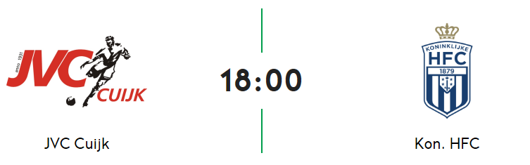 Het in de 2e divisie spelende HFC is aanstaande zaterdag de tegenstander. Een mooie, maar uitstekende tegenstander waaraan JVC Cuijk haar handen aan vol zal hebben. In deze ploeg spelen o.a. Kevin Duin van Jong AZ en Feyo Glim van NAC Breda. Een tegenstander waarbij JVC Cuijk in een underdog positie zit. Daarentegen heeft JVC Cuijk een goede voorbereiding achter de rug. Een 2e plaats op het nederlaagtoernooi bij de Treffers en een wedstrijd tegen NEC waarin de ploeg lang overeind bleef en goed tegenstand bood.