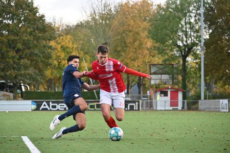 Bij het inspelen maakte SVW 1 met veel atletische spelers al behoorlijk indruk met razendsnelle rondo’s. De Gorkummers staan niet voor niets tweede. Dat kwam er geleidelijk aan in de eerste helft ook uit. JVC deed zijn best te komen tot verzorgd spel, maar in de voorste linie vlotte het steeds niet. SVW dekte de JVC-aanvallers kort en efficiënt en brak regelmatig gevaarlijk uit via soepele combinaties op het middenveld. In de 14e minuut liep het voor JVC nog net goed af. In de 25e minuut wist de SVW-rechtsbuiten na een uitbraak de JVC-verdediging uit te kappen en fraai te scoren. Ook de razendsnelle SVW-linksbuiten werd regelmatig gezocht. Deze gaf in de 31e minuut een strakke voorzet die perfect werd afgerond: 0-2. JVC deed wel wat terug. Een inzet van Jordie van der Laan werd van de lijn gehaald en diens schot direct daarop ging maar net voorlangs.